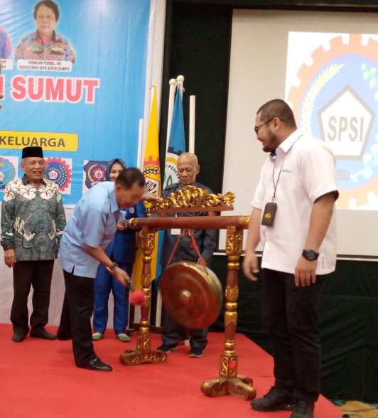 Acara dihadiri Kabid Hubungan Industrial (HI) Disnaker Sumut Makmur Tinambuna SH mewakili Kadisnaker yang berhalangan hadir, perwakilan BPJS Ketenagakerjaan Roby dan pengurus serta para anggota KSPSI DPD Sumut.