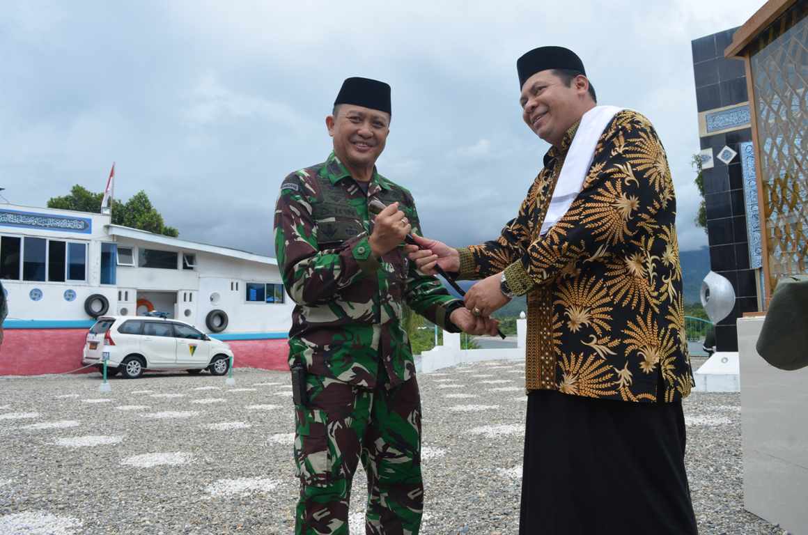 Sebelum itu, Abu Dayah Manyang Puskiyai Aceh, Tgk H Farmadi ZA MSc memberikan cendra mata berupa tongkat dan ridak kepada Danrem didepan bangunan Replika Ka’bah yang sering digunakan sebagai sarana manasik para jamaah yang akan berangkat haji dan umrah.