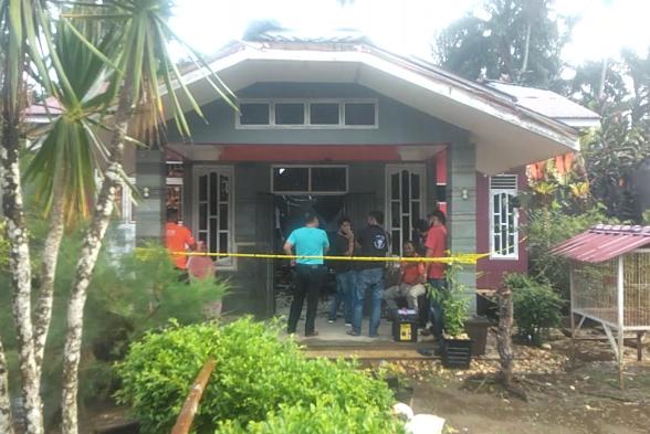 Pihak Poldasu melakukan Labfor identifikasi di rumah milik warisan orang tua Faisal Salim Putra Ritonga di Desa Aek Kanan Kecamatan Dolok Sigompulon Kabupaten Paluta Sumatera Utara, Jumat (19/3/2021) sore dini hari.