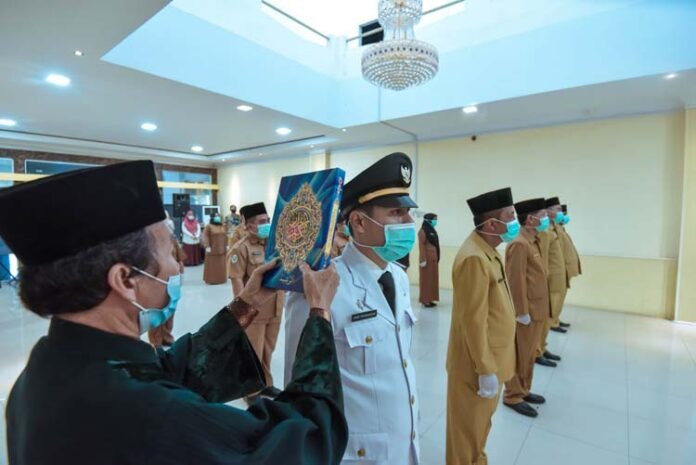 Usai pelantikan dilanjutkan dengan penandatanganan berita acara pelantikan antara Walikota Padangsidimpuan Irsan Efendi Nasution, SH, dengan pejabat yang dilantik. (RI)