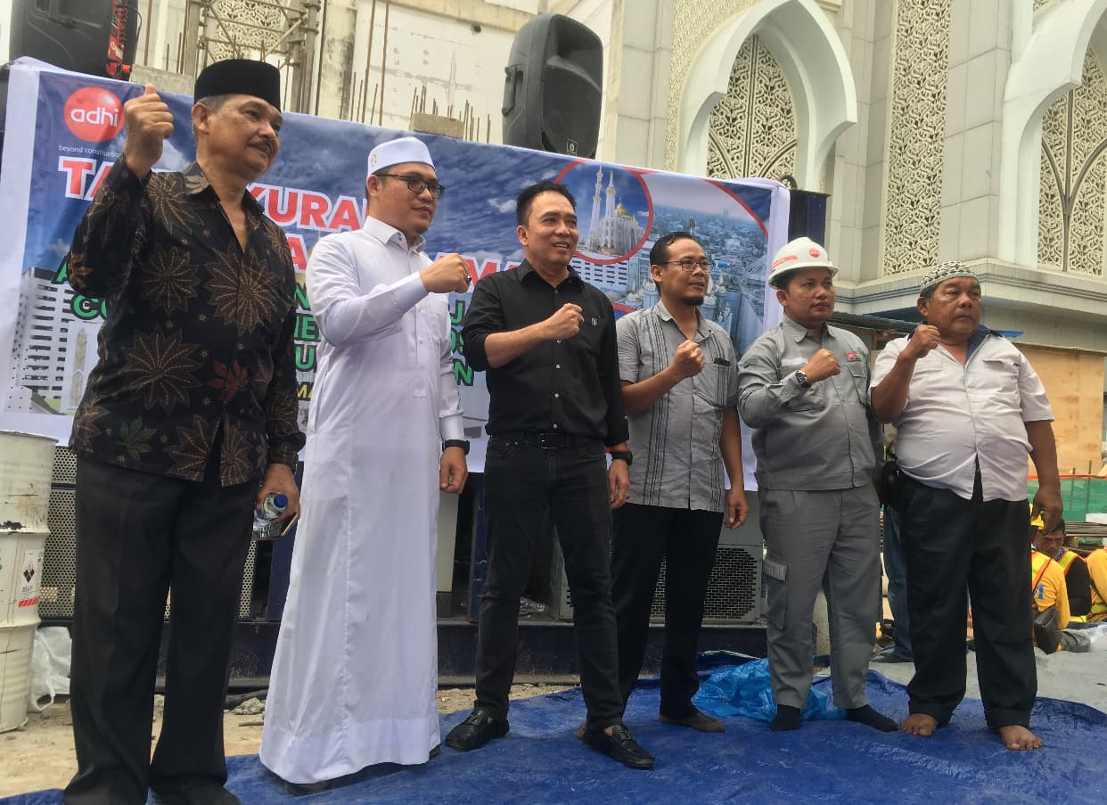 Dimulainya pembangunan menara 99 meter pada bangunan masjid baru di perluasan Masjid Agung Medan ini ditandai dengan Tasyakuran dan Doa Bersama ‘Core Wall’ atau pengecoran dinding.