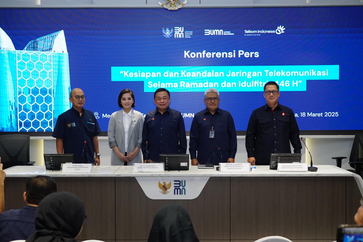 Konferensi Pers dipandu oleh Juru Bicara Kementerian BUMN RI Putri Violla dan turut dihadiri Direktur Network and IT Solution Telkom Herlan Wijanarko, serta Direktur Sales Telkomsel Adiwinahyu Basuki Sigit.