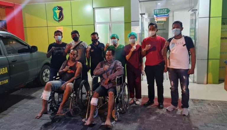 MEDAN – Dua pelaku curanmor (pencurian kendaraan bermotor) tersungkur bersimbah darah. Setelah bagian kakinya ditembus timah panas petugas Unit Reskrim Polsek Medan Baru.