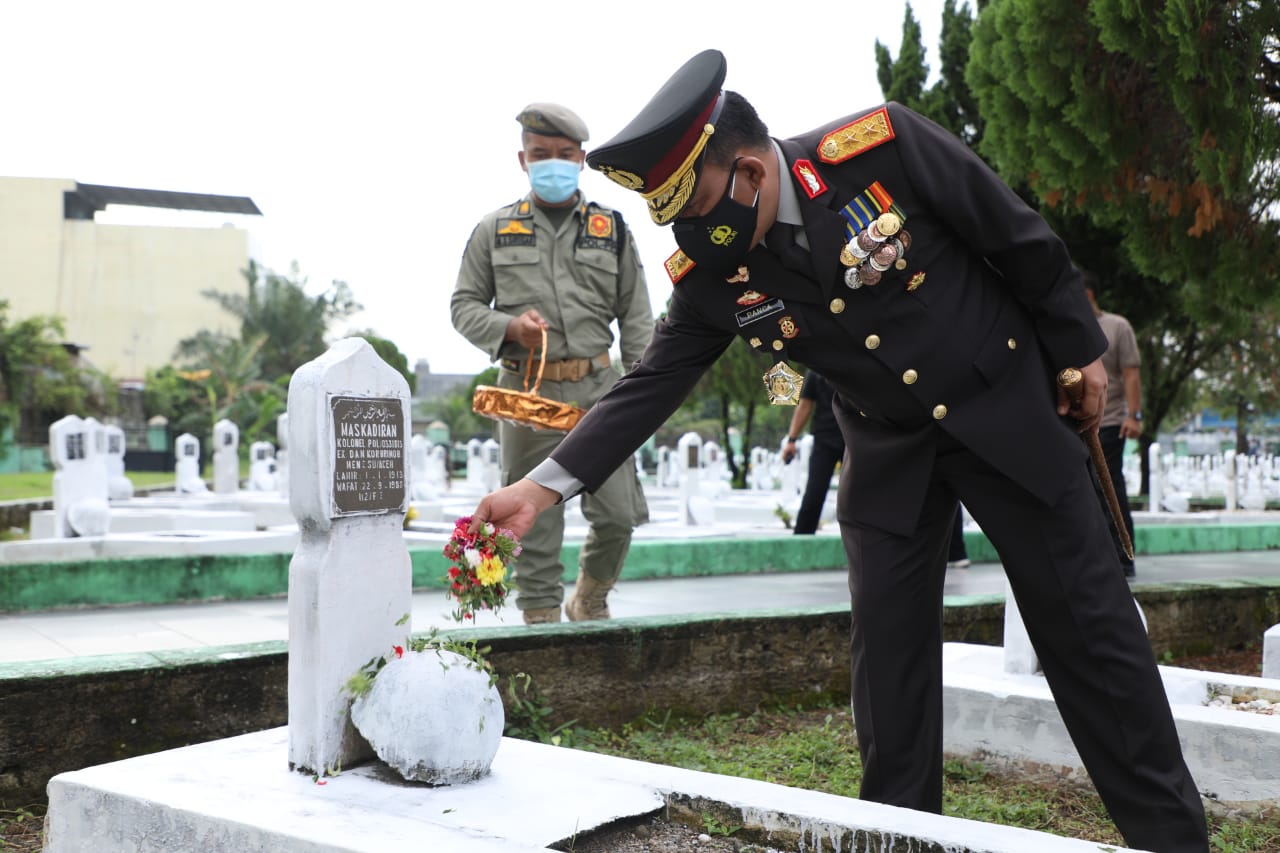MEDAN – Kapolda Sumut, Irjen Pol RZ Panca Putra Simanjuntak, berziarah ke Taman Makam Pahlawan (TMP) di Jalan SM Raja Medan dalam rangka memperingati HUT ke-73 Provinsi Sumatera Utara, pada Kamis (15/4/2021) pagi.