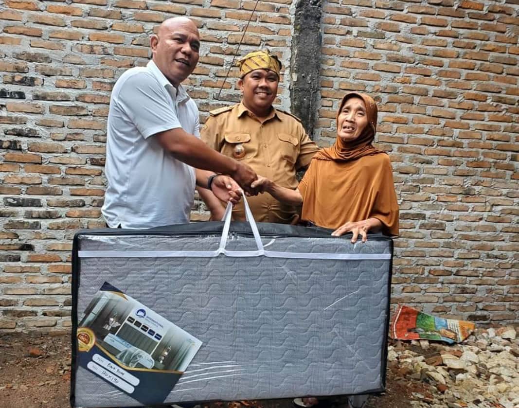 Sementara Ibu Misni yang menerima kasur tersebut langsung menangis terharu. Ibu Misni langsung memeluk Lurah Sinaksak, Armada, SH yang juga hadir di lokasi.