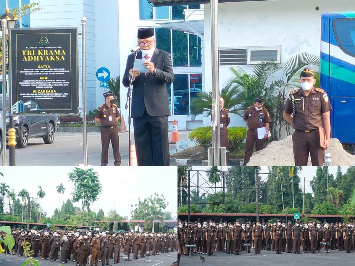 MEDAN-Kepala Kejaksaan Tinggi Sumatera Utara (Kajati Sumut) Idianto, SH, MH jadi inspektur upacara peringatan Hari Kebangkitan Nasional yang 114 di halaman kantor Kejati Sumut Jalan AH Nasution Medan, Jumat (20/5/2022).