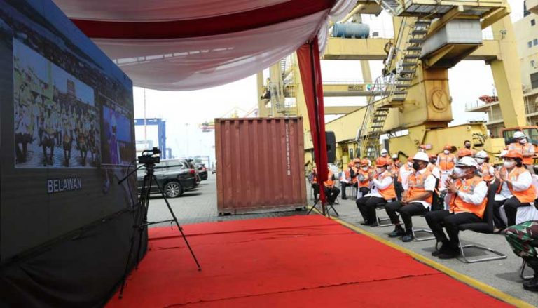 MEDAN – Wakil Wali Kota Medan, H. Aulia Rachman menyaksikan langsung pelesapan merdeka ekspor 2021 di Terminal A Peti Kemas, Pelabuhan Gabion Belawan, Sabtu (14/8).