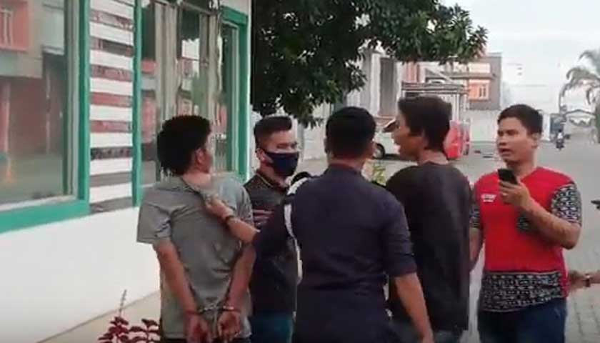 MEDAN – Seorang pria pengangguran babak belu dihajar massa setelah tertangkap tangan karena jambret HP seorang wanita di kawasan Jalan SM Raja, Medan, Senin (19/10/2020). Beruntung nyawa tersangka diselamatkan sekuriti Amplas Trade Centre tidak jauh dari lokasi kejadian.