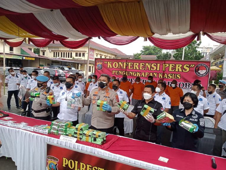 “Pelaku yang ditangkap itu ada kurir, pengedar dan pemasok sabu untuk diedarkan di Kota Medan,” kata Kapolrestabes Medan Kombes Pol Riko Sunarko, didampingi Plt Kasat Narkoba Kompol Rikki Ramadhan dan Kasi Propam Kompol Zonni Aroma kepada wartawan di Mapolrestabes Medan, Rabu (20/10/2021).