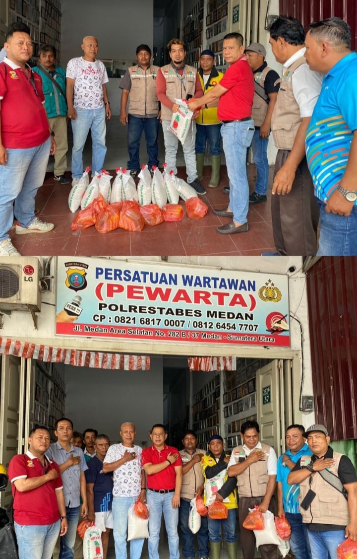Kali ini, Ketua Pewarta menggulirkan bantuan paket sembako kepada para petugas PLN dan ojek online (Ojol) yang dilakukan di Kantor Pewarta Polrestabes Medan, Jalan Medan Area Selatan No. 282, Kecamatan Medan Area, Kota Medan.
