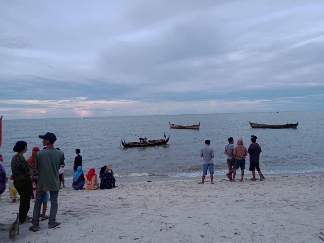 Upaya pencarian juga melibatkan personel Sat Pol Air Polres Sergai yang dipimpin Bripka Zulhamsyah dengan melakukan pencarian menggunakan kapal Boat Nelayan Pantai Kuala Putri Pantai Cermin.