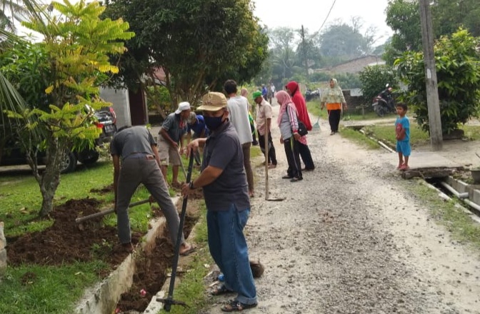 Camat Kisaran Barat Lukman Hakim yang dikenal dengan tipe pekerja keras mengajak warga bersama pengurus LPM dan Kepling Kelurahan Bunut Barat gotong royong bersma membersihkan parit yang tertutup tanah.
