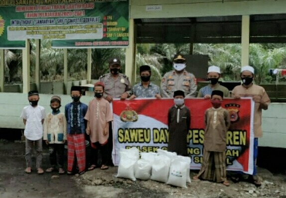Dikesempatan tersebut Kapolsek Gunung Meriah menyalurkan 50 zak beras kepada 4 pengurus pondok, dayah dan pesantren, serta menyampaikan pesan-pesan kamtibmas kepada ustadz dan para santri, serta menghimbau agar selalu memakai marker, cuci tangan dan jaga jarak serta hindari kerumunan guna cegah covid-19. (RS)