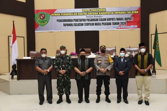 “ Setelah ditetapkan KPU, DPRD menggelar paripurna pengumuman penetapan pasangan calon Bupati dan Wakil Bupati Tapsel terpilih hasil Pilkada Tahun 2020. Atas nama pribadi dan pimpinan DPRD Kabupaten Tapsel, saya mengucapkan selamat dan mengajak semua masyarakat untuk mendukung Bupati dan Wakil Bupati terpilih dalam pelaksanaan program pembangunan sesuai dengan visi misi yang telah ditetapkan dalam mewujudkan Tapsel yang sehat, cerdas, dan sejahtera, “ ujar Husin Sogot.
