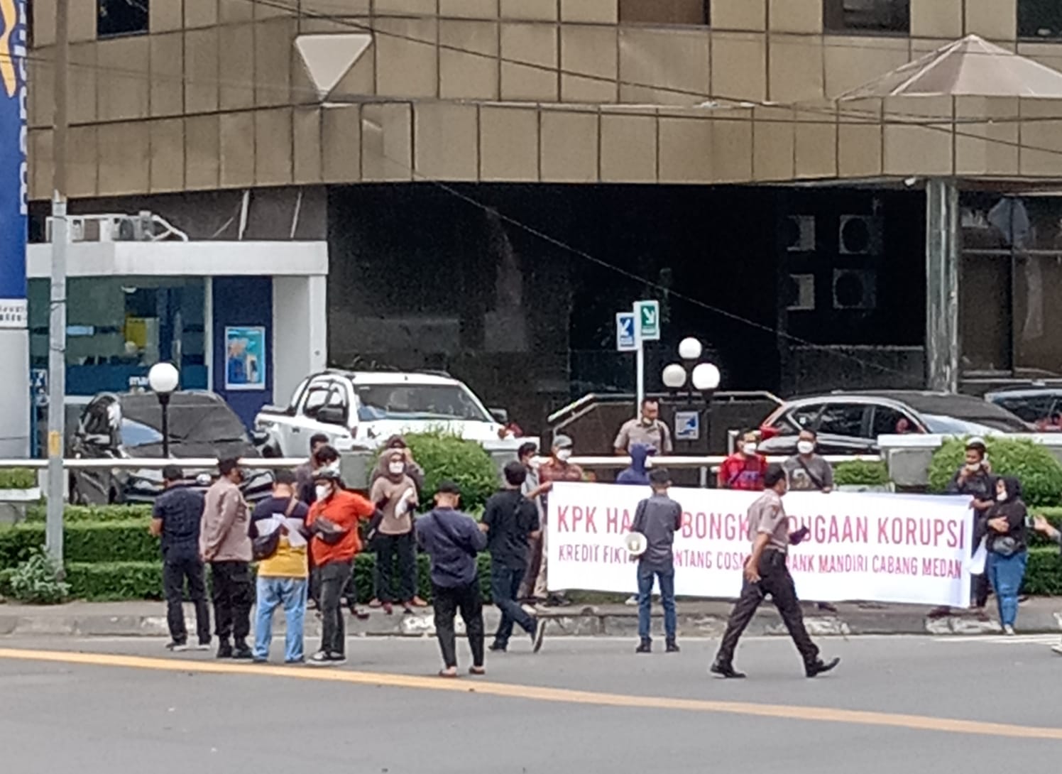 “Kami meminta agar KPK segera memeriksa dan menangkap 16 orang terlapor kasus dugaan korupsi kredit fiktif ini. Kami yakin KPK tidak bisa diintervensi oleh siapa pun, termasuk bosnya PT. Bintang Cosmos yang katanya dekat dengan petinggi penegak hukum di republik ini,” ungkap Koordinator Aksi PERMAK Sumut Widya Nursella dalam orasinya.