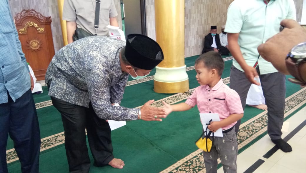 Padang Lawas.Siberindo | Bupati Padang Lawas ( Palas) H Ali Sutan Harahap ( TSO ) memberikan santunan tali asih kepada sekitar 248 orang anak yatim, di Kecamatan Sosa. Penyerahan santunan tali asih ini, berlansung secara simbolis, di Masjid Taqwa, Desa Pasar Ujung Batu, kecamatan setempat, Selasa (20/04/2021).
