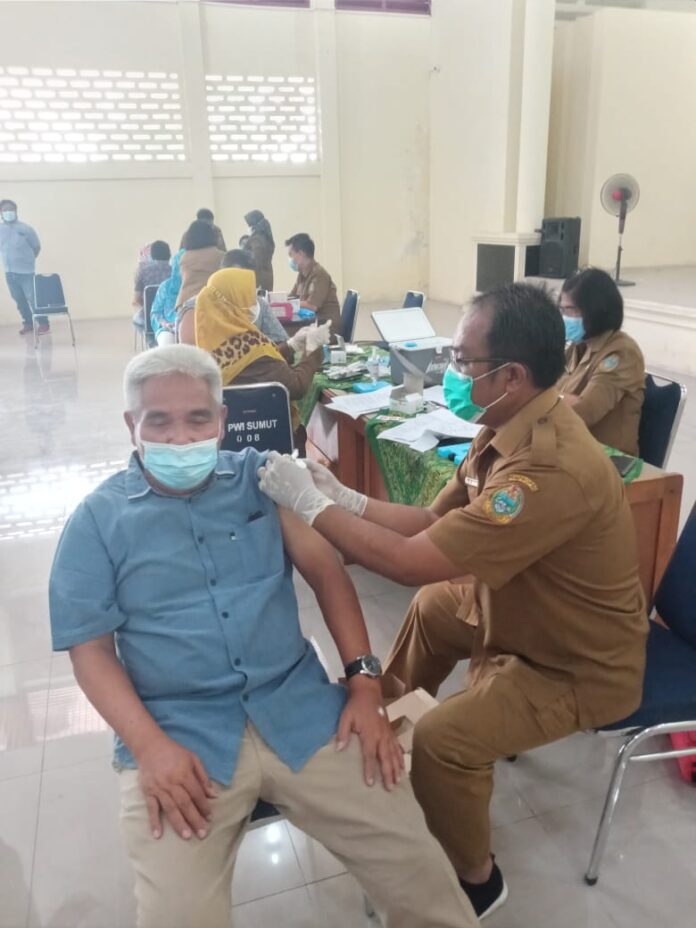 MEDAN – realitasonline.id | Keluarga besar Persatuan Wartawan Indonesia (PWI) Provinsi Sumatera Utara (Sumut) mengikuti kegiatan vaksinasi Coronavirus Disease 2019 (Covid-19) di gedung Parada Harahap PWI Sumut Jalan Adinegoro No. 4 Medan, Selasa (20/4/2021).