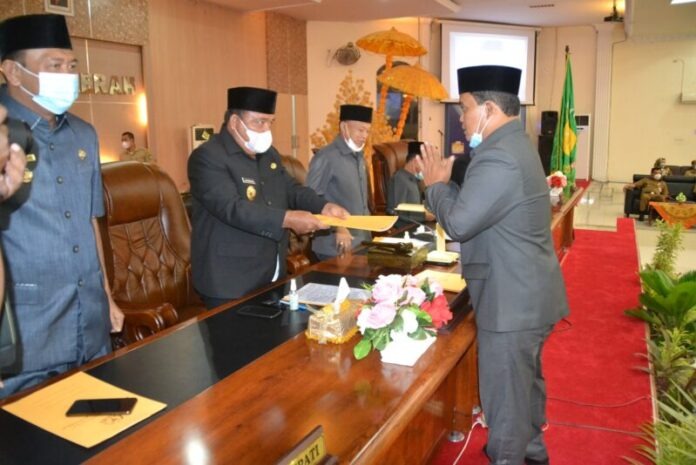 Disampaikan Bupati Langkat Terbit Rencana PA saat menghadiri rapat paripurna dalam rangka rekomendasi DPRD Langkat terhadap Laporan Keterangan Pertanggung Jawaban (LKPJ) Bupati Langkat Tahun Anggaran (TA) 2020, bertempat di Gedung DPRD Langkat, Stabat, Selasa (20/4/2021).
