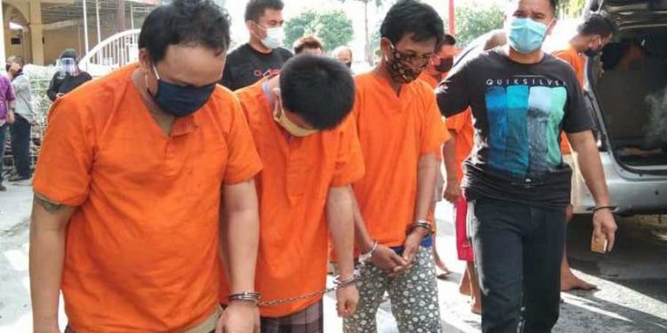 Dari lokasi ini petugas berhasil menangkap kedua tersangka masing-masing Taufik Hidayat (50) warga Simpang Sebanga Km. 3, Desa Sebanga, Kec. Mandau, Kab. Bengkalis Provinsi Riau dan Basri alias Aphen (43) warga Komplek Villa Permata Indah Blok-E No. 10, Kelurahan Labuh Baru Barat, Kecamatan Payung Sekaki, Kota Pekan Baru, Provinsi Riau.