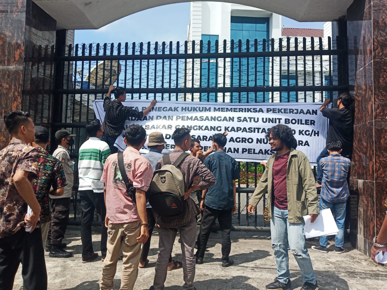 Mereka meminta dengan tegas agar Kejaksaan Tinggi Sumatera Utara memanggil dan memeriksa siapa saja yang terlibat dalam pelaksaan pekerjaan pengadaan dan pemasangan 1 unit boiler berbahan bakar cangkang kapasitas 6000kg/h combination baik itu Dirut PT. Sarana Agro Nusantara saudara TR, PPK, PPTK, Ketua Panitia Lelang saudara LS dan memeriksa rekanan pelaksana saudara MS. “Segera periksa siapa saja yang terlibat dalam pelaksaan pekerjaan tersebut,” tegas massa aksi.