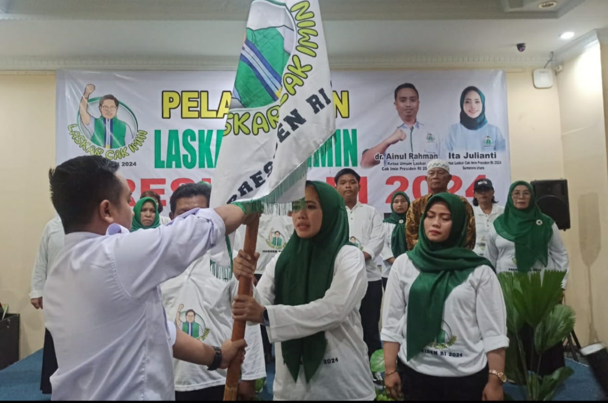 Medan – Ketua Umum Laskar Cak Imin Presiden RI 2024 dr Ainul Rakhman, secara resmi melantik Pengurus Laskar Cak Imin Presiden RI 2024 Propinsi Sumut priode 2023 – 2025 dibawah pimpinan Ita Julianti, di Hotel Madani Jln Sisingamangaraja Medan Jumat sore 21/07.