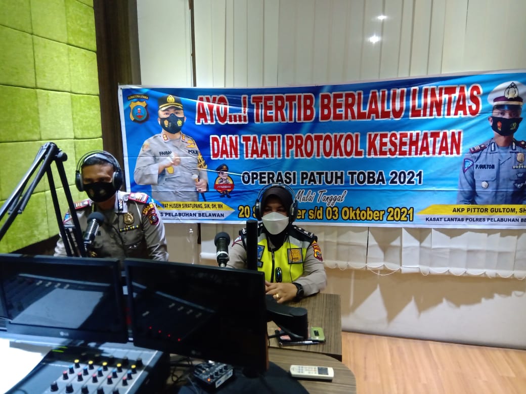 Kasat Lantas Polres Pelabuhan Belawan bersama Personil Satgas Prevemtif Ops Patuh Toba 2021 melaksanakan Talk Show di Radio Medan FM 96.3 FM dan Mensosialisasikan kepada masyarakat tentang berlakunya Ops Patuh Toba 2021 yang dimulai dari tanggal 20 September 2021 s/d 03 Oktober 2021.
