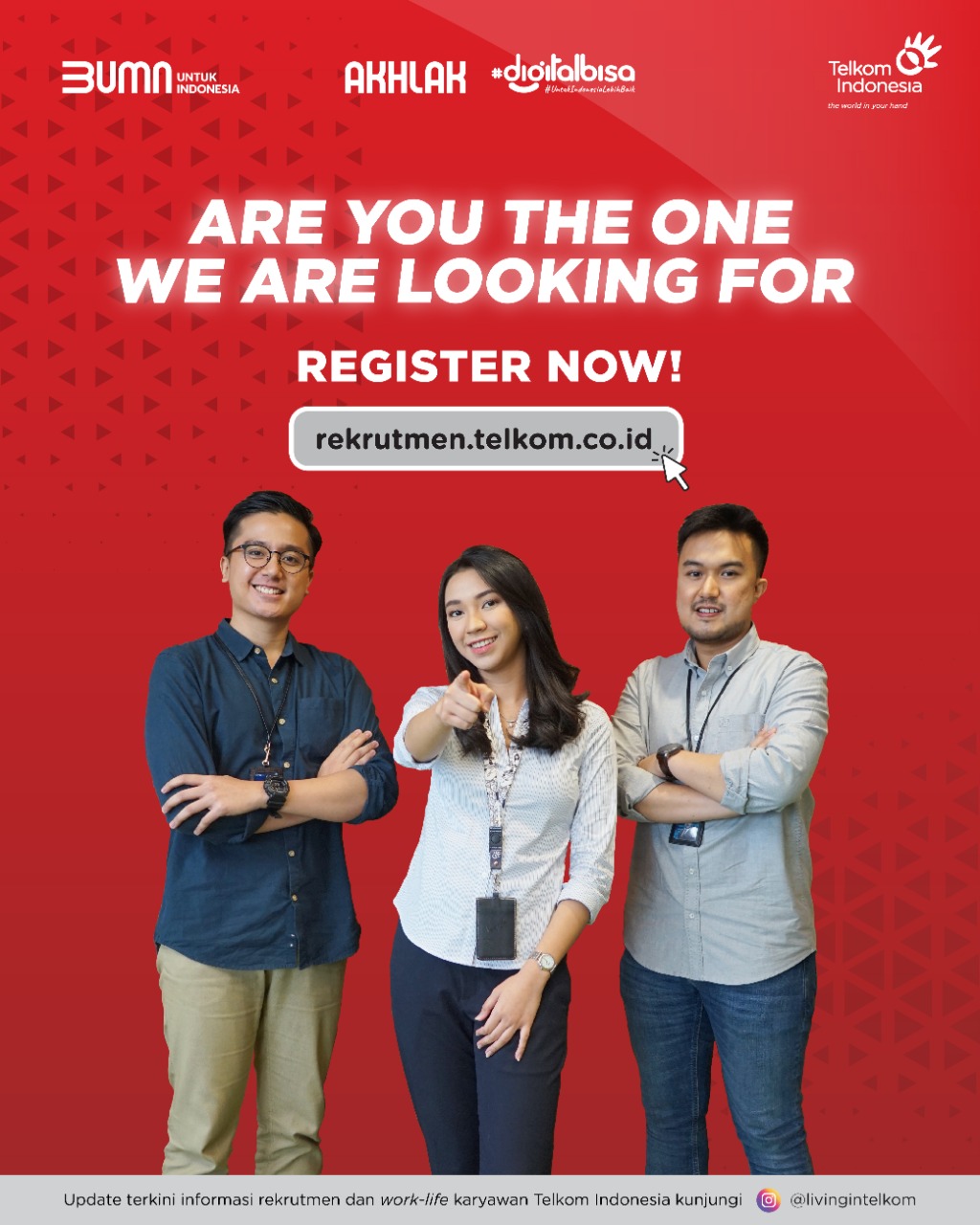 Telkom menegaskan bahwa tidak memungut biaya apapun dan tidak menjalin kerja sama dengan pihak manapun dalam pelaksanaan seleksi, termasuk penyediaan jasa transportasi dan akomodasi. Para pelamar dapat mengecek informasi dan proses rekrutmen ini melalui kanal resmi website rekrutmen.telkom.co.id dan akun Instagram @livingintelkom. (R/intipos)