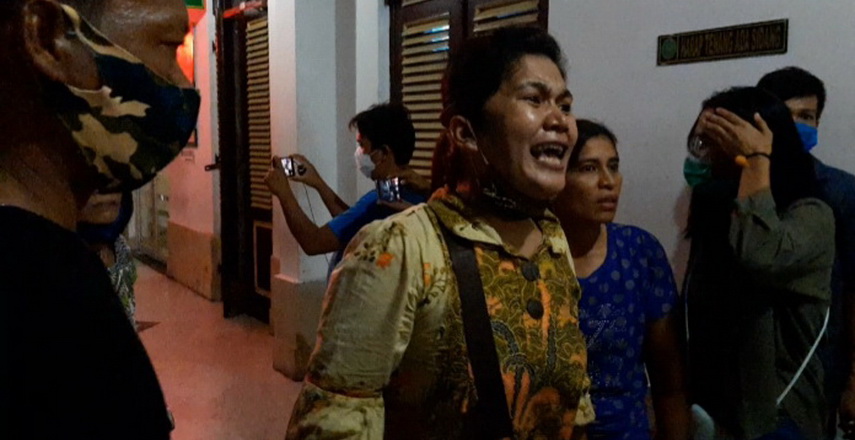 Dalam kondisi emosional ‘tingkat tinggi’ istri korban sempat menunjuk-nunjuk hakim ketua yang ia nilai menjatuhkan vonis sangat jauh dari rasa keadilan. Beberapa anggota keluarga juga tampak berusaha keras menenangkan emosinya.