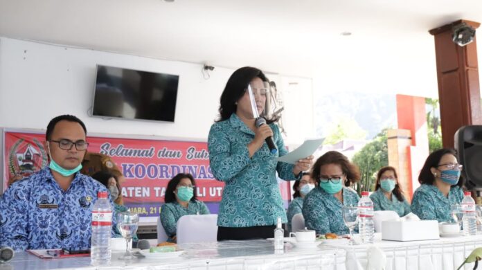 TAPUT –realitasonline.id | Ketua Tim Penggerak PKK Ny Satika Nikson Nababan boru Simamora dalam rapat kordinasi PKK di Hotel GNB Muara, Senin (21/12) 2020 menegaskan seluruh elemen dari Desa hingga Kecamatan serta Kabupaten bersinergi mendukung ketahanan pangan.