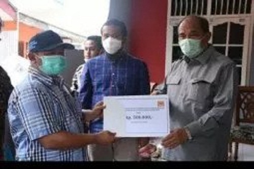 “Bantuan uang tunai untuk upah tukang dan membeli bahan material bangunan sesuai dengan kerusakan rumah dan mudah mudahan bantuan ini bisa dipergunakan dengan sebaik baiknya,” katanya.