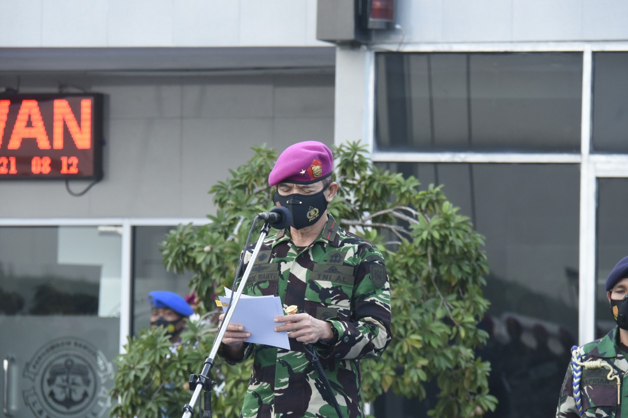 BELAWAN-Polisi Militer Angkatan Laut Lantamal I Sang Prajurit Wijna Wira Widhayara merayakan Hari Jadi yang Ke-75 dalam Acara Apel Khusus bertempat di Lapangan Apel Mako Lantamal I Belawan Senin, (22/02/2021)