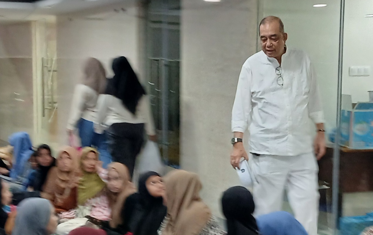 “Assalamu’alaikum, insya Allah selamat berbuka ya,” ucap Yuslin, suaranya lembut namun penuh energi kebersamaan.