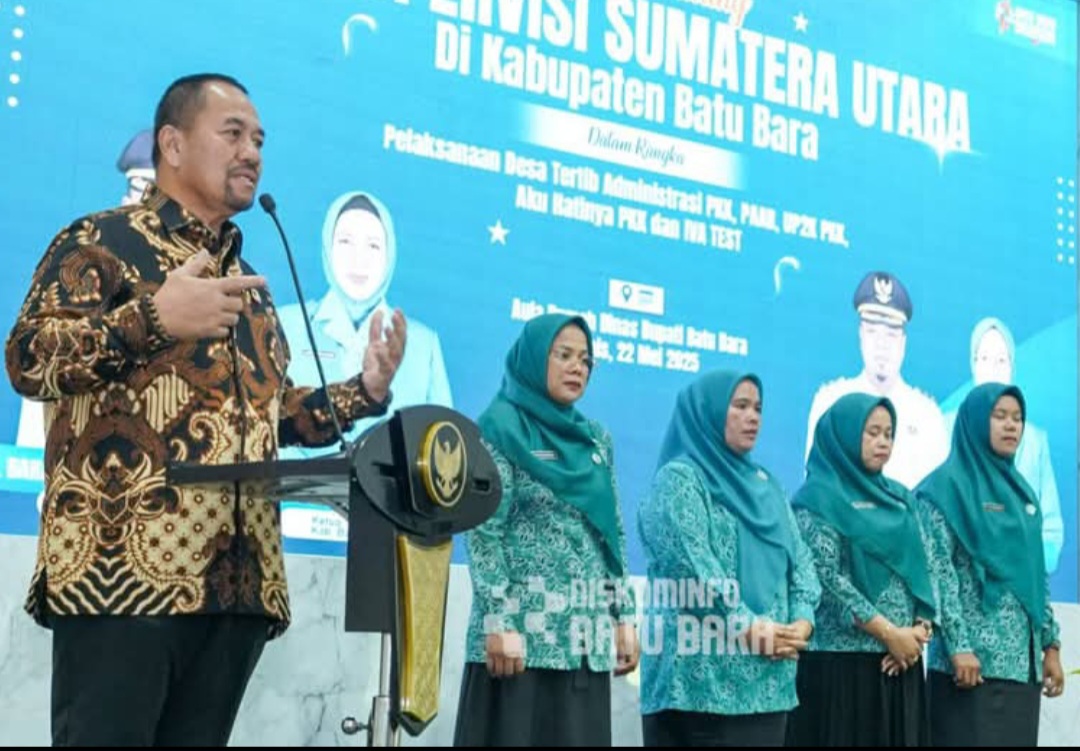 Batu Bara – Bupati Batu Bara, H. Baharuddin Siagian, SH, M.Si, bersama Ketua Tim Penggerak PKK Kabupaten Batu Bara, Ny. Henny Heridawaty Baharuddin, menyambut hangat kunjungan Tim Supervisi TP PKK Provinsi Sumatera Utara dalam rangka peninjauan desa percontohan PKK Tahun 2025. Acara berlangsung di Aula Rumah Dinas Bupati Batu Bara, Kecamatan Sei Suka, Kamis (22/5/2025).