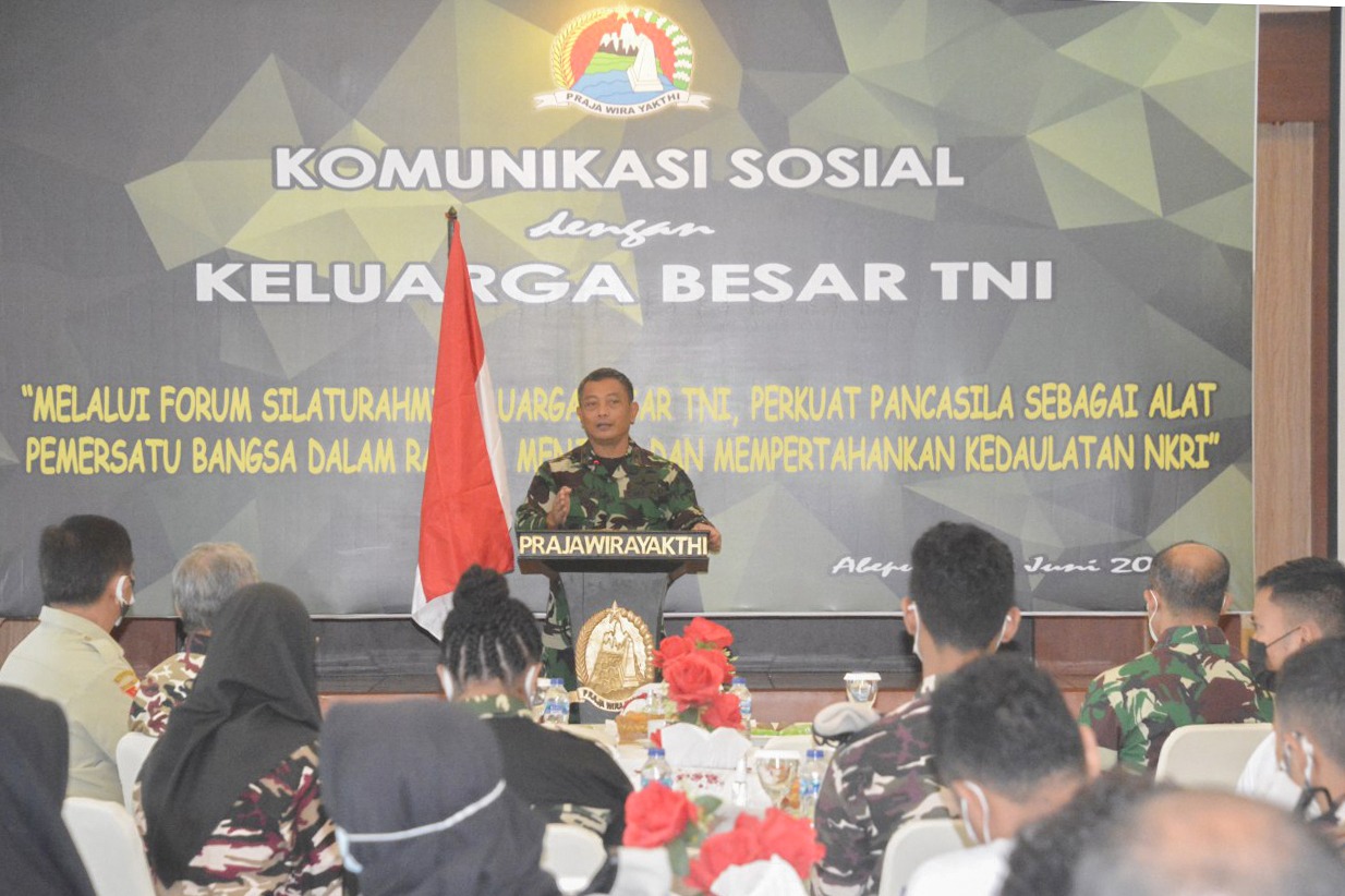 JAYAPURA–Korem 172/PWY menggelar komunikasi Sosial (Komsos) dengan Keluarga Besar TNI dari FKPPI, PPM dan Hipakad bertempat di Aula Makorem, Abepura, Kota Jayapura, Selasa (22/6).