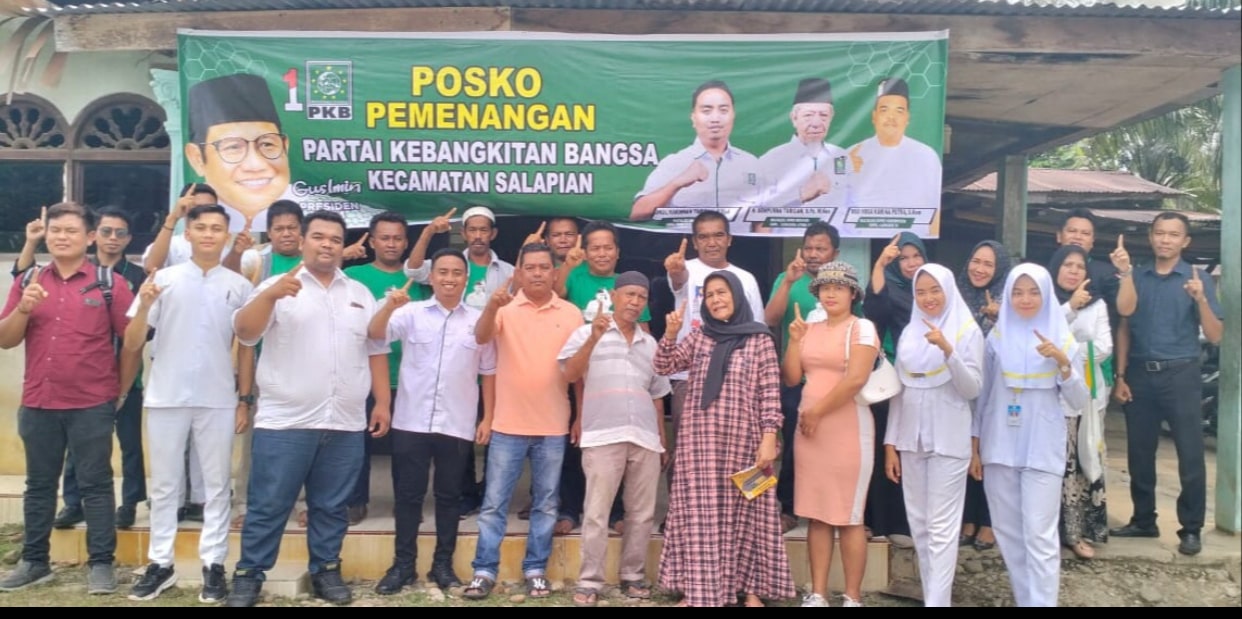 Deklarasi Gus Muhaimin Capres RI 2024 oleh Bacaleg DPR RI dari Sumut 3, Ainul Rahman Tarigan bersama Pengurus Garda Bangsa Kabupaten Langkat usai menyerahkan bantuan pembangunan tempat berwudhu Mesjid Ar Rahman Desa Turangi yang diterima Nazir Mesjidnya Sekula Surbakti, sekaligus meresmikan Posko Kemenangan PKB pada Pemilu 2024 di Kecamatan Salapian Langkat.