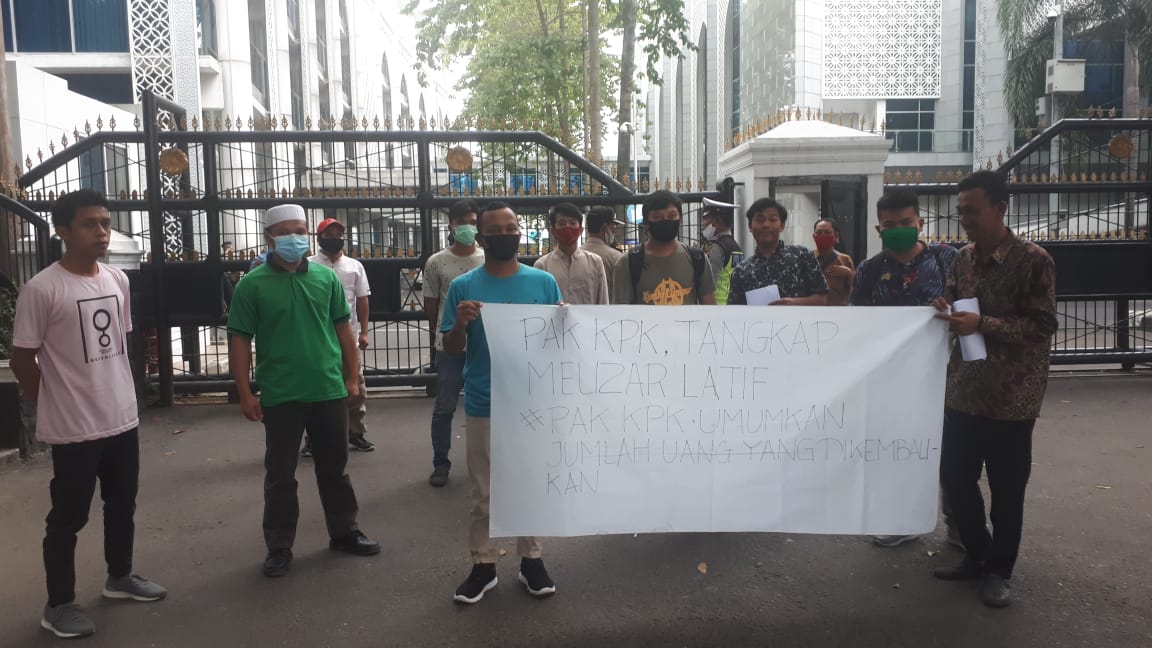 MEDAN-Belasan massa mengatasnamakan Jaringan Keadilan Nusantara berunjukrasa di gedung DPRD Sumut, Rabu 22 Juli 2020. Mereka meminta KPK agar menangkap mantan anggota DPRD Sumut Meilizar Latif.