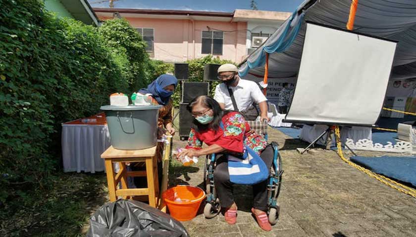 MEDAN – Komisi Pemilihan Umum Kota Medan gelar Simulasi Pemungutan dan Penghitungan Suara (PPS) menerapkan protokol kesehatan (Prokes) dengan menjalankan 3 M (Memakai Masker, Mencuci Tangan , Menjaga Jarak) di Halaman Taman Tjong Yong Hian Jalan Kejaksaan No 36 Kelurahan Petisah Tengah Kecamatan Medan Petisah, Sabtu (17/10/2020).