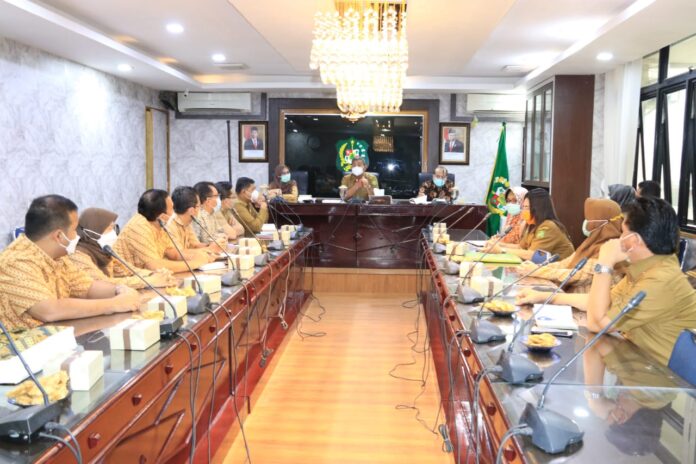 MEDAN – realitasonline.id | Sekda Kota Medan Ir Wiriya Alrahman MM menerima  Kunjungan Kerja (kunker) BPJS Kesehatan Kota Medan bersama  Kementrian Dalam  Negeri  (Kemendagri)  RI di Balai Kota Medan, Selasa (22/12). Kunker yang dilakukan, terkait monitoring  dan evaluasi pembayaran iuran pekerja penerima upah (PPU) pemerintah daerah dan aparat desa.