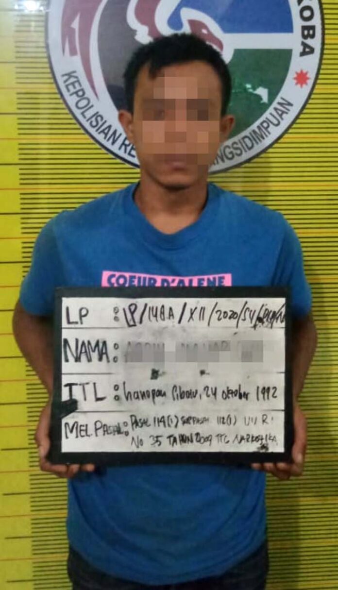 PADANGSIDIMPUAN – realitasonline.id | Seorang pria pengangguran AML (28), warga Jalan Alboin Hutabarat Lingkungan I Kelurahan Hanopan Sibatu Kecamatan Padangsidimpuan Selatan Kota Padangsidimpuan, dibekuk jajaran Sat ResNarkoba Polres Padangsidimpuan, Jumat (18/12/2020), sekira Pukul 23.30 Wib.