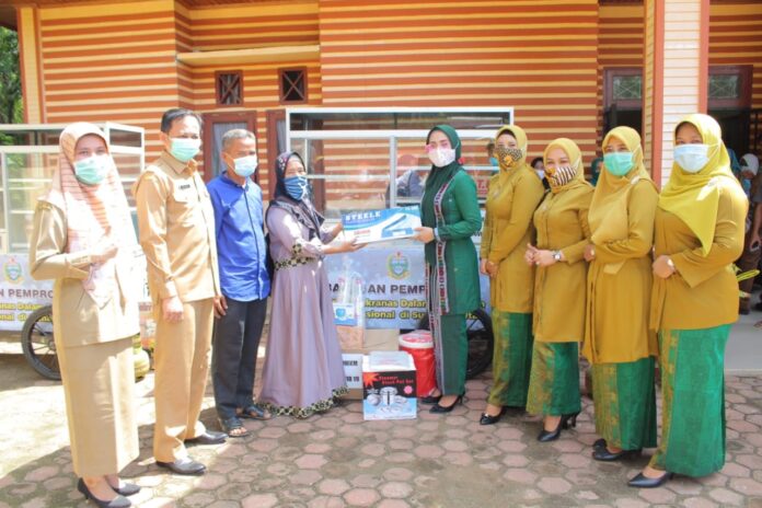 Bantuan yang diberikan dalam rangka pemulihan ekonomi nasional tersebut diserahkan langsung oleh Ketua Dekranasda Kabupaten Paluta Ny Ade Aan Rostiani Andar Amin Harahap di kantor Dekranasda Kabupaten Paluta, Selasa (22/12)