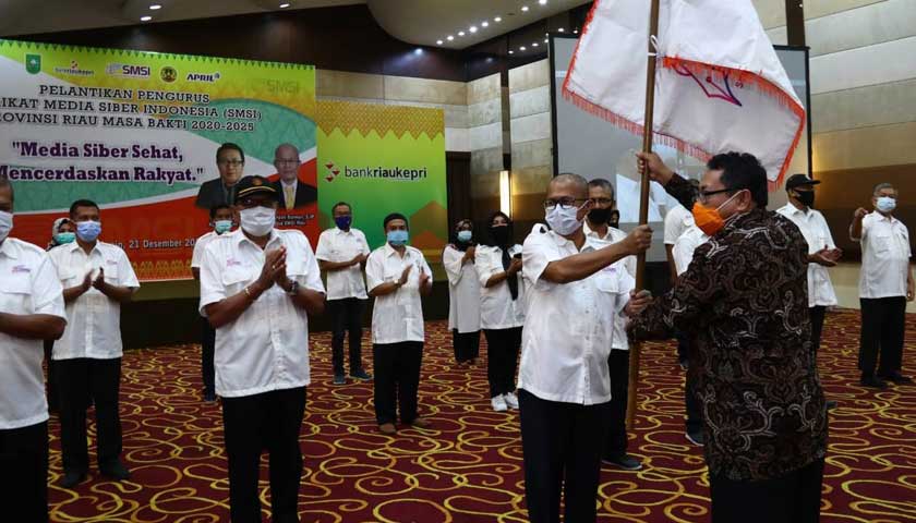 RIAU – Pengurus Serikat Media Siber Indonesia (SMSI) Provinsi Riau Masa Bakti 2020-2025, resmi dilantik oleh Ketua Umum SMSI Pusat, Drs Firdaus MSi, Senin (21/12/2020), di Ballroom Menara Bank Riau Kepri.