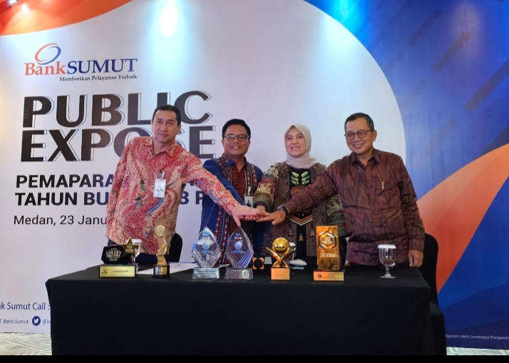Demikian disampaikan saat public expose dan pemaparan kinerja Tahun Buku 2023 PT Bank Sumut Selasa (23/1/2024). turut hadir juga pada acara tersebut Direktur Utama Bank Sumut Babay Parid Wazdi, Direktur Keuangan dan TI Bank Sumut Arieta Aryanti, Direktur Pemasaran Hadi Sucipto dan Direktur Kepatuhan Eksir