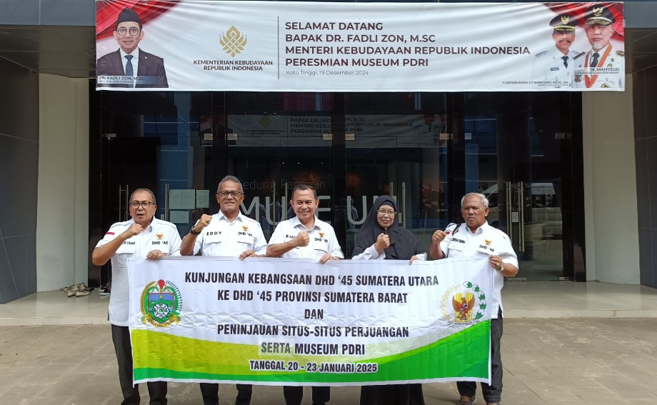 Lima Puluh Kota – Guna membangkitkan nilai perjuangan mempertahankan eksistensi Republik Indonesia, Dewan Harian Daerah Badan Pembudayaan Kejuangan (DHD) 45 Sumatera Utara melakukan kunjungan ke sejumlah situs bersejarah di Sumatera Barat, Senin dan Kamis (21-23/1/25).