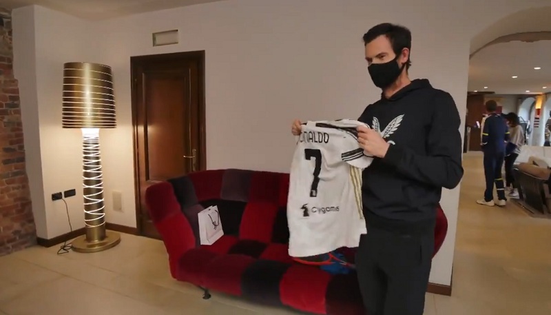 CR7 mengirimnya sehelai jersey Juventus lengkap dengan tanda tangan. Sebagai balasan, Cristiano Ronaldo mendapat hadiah sehelai seragam ACM serta satu buah raket tenis dari Andy Murray.