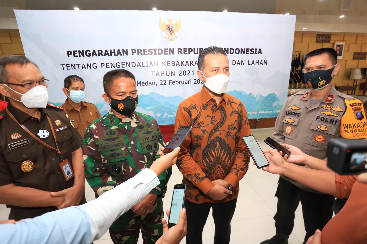 “Sesuai dengan arahan Pak Presiden, kita harus mengupayakan pencegahan kebakaran hutan, jadi setiap ada kebakaran hutan. Sebelum apinya membesar harus segera dilaporkan. Ini butuh kerja sama semua pihak termasuk masyarakat,” kata Wakil Gubernur (Wagub) Sumut Musa Rajekshah usai menghadiri secara virtual Pengarahan Presiden RI Joko Widodo tentang Pengendalian Kebakaran Hutan dan Lahan, di Aula Tengku Rizal Nurdin, Jalan Jenderal Sudirman Nomor 41, Medan, Senin (22/2).