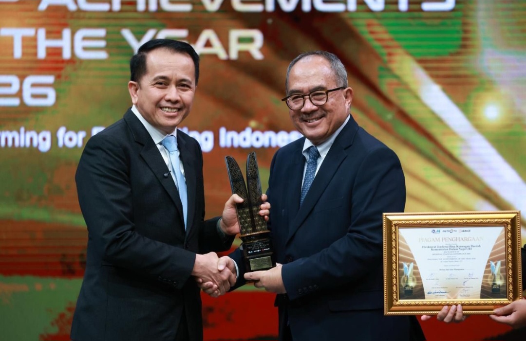 Jakarta. Direktur Jenderal (Dirjen) Bina Keuangan Daerah (Keuda) Kementerian Dalam Negeri (Kemendagri) Agus Fatoni, menerima penghargaan Excellence in Regional Financial Governance 2026, dalam ajang bergengsi penghargaan nasional Indonesia Top Achievements of The Year 2026 (ITAY 2026) bertema Transforming for Reinventing Indonesia. Penghargaan diserahkan langsung oleh Komisaris Metro TV, Suryopratomo di Studio Grand Metro TV, Jakarta, Jumat malam, 20 Februari 2026.