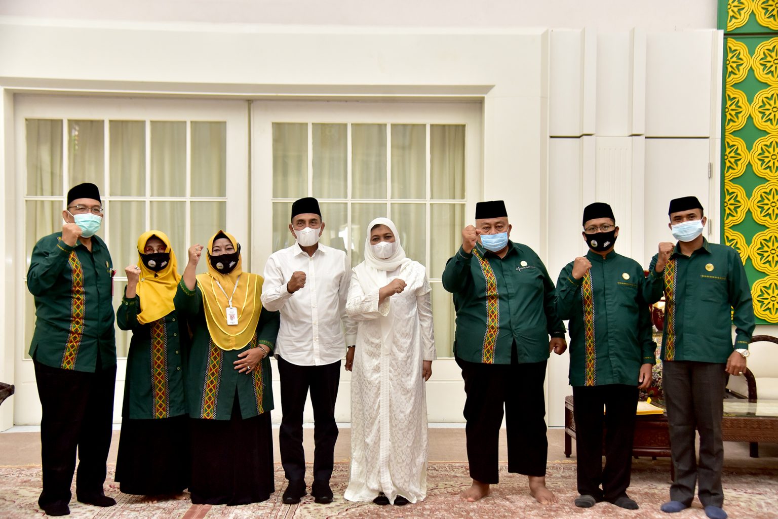 MEDAN – Gubernur Sumatera Utara (Sumut) Edy Rahmayadi menerima kunjungan silaturahmi Pengurus Badan Pembina Rohani Islam Babinrohis Sumut di Rumah Dinas Gubernur, Jalan Jenderal Sudirman Nomor 41 Medan, Senin (19/4/2021). Gubernur menyambut baik program Babinrohis. Diantaranya program bantuan di masa pandemi Covid-19.