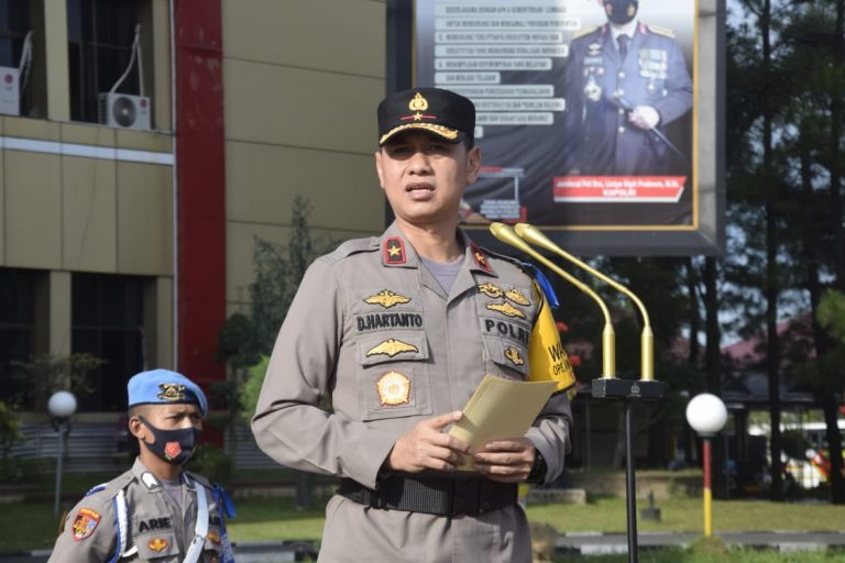 LABUHANBATU – Wakapolda Sumut, Brigjen Pol Dadang Hartanto, memimpin Apel Pergeseran Pasukan Serpas Brimob dalam rangka pengamanan Pemungutan Suara Ulang (PSU) di Kabupaten Labuhanbatu , Labuhan Batu Selatan (Labusel) dan Madina, pada Selasa (20/04/21).