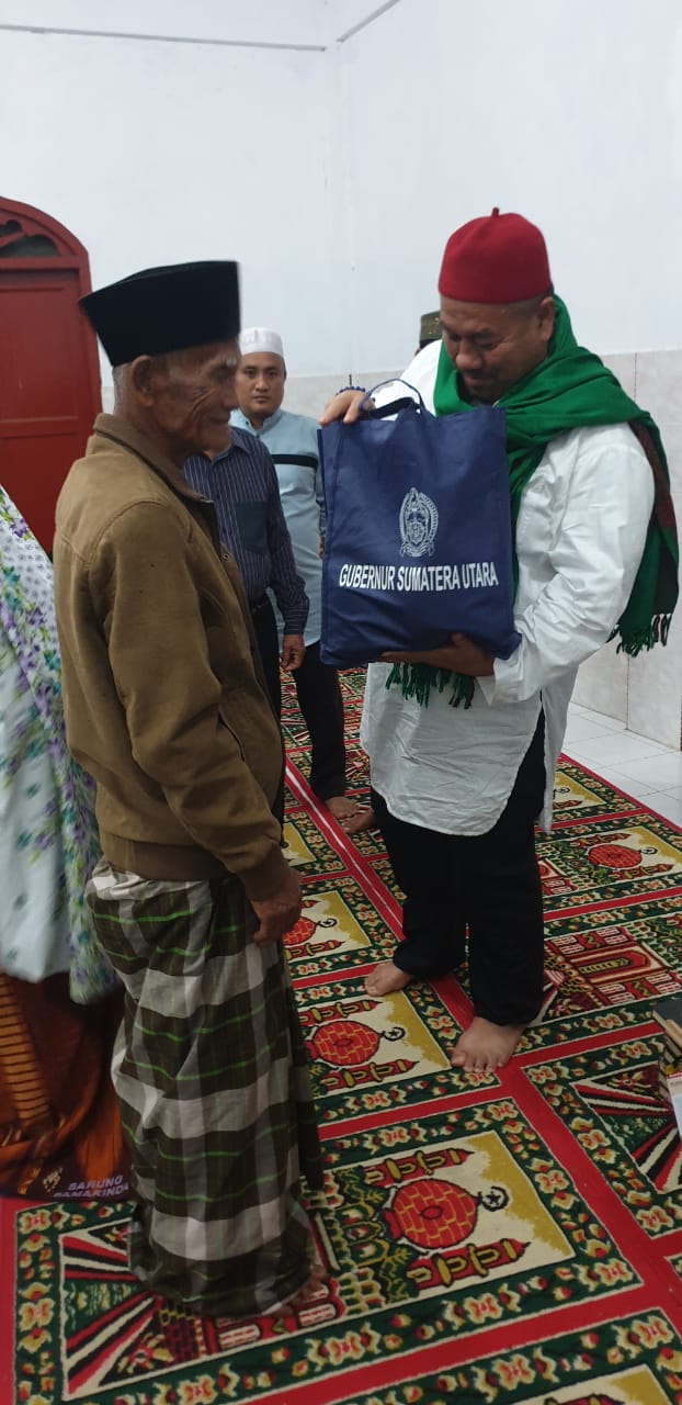 Acara dilanjutkan dengan pemberian 50 paket sembako yang diamanahkan oleh Gubernur Sumut Edy Rahmahyadi untuk disampaikan kepada jamaah kedua BKM yang letaknya berdekatan.