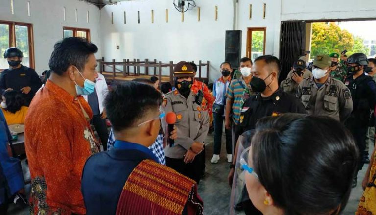 MEDAN – Polsek Patumbaktim Gugus Tugas Covid-19, membubarkan pesta pernikahan di Aula Gereja HKBP Resort Martoba I Jalan SM Raja Km 10, Kecamatan Medan Amplas, Sabtu (21/8/2021) siang.